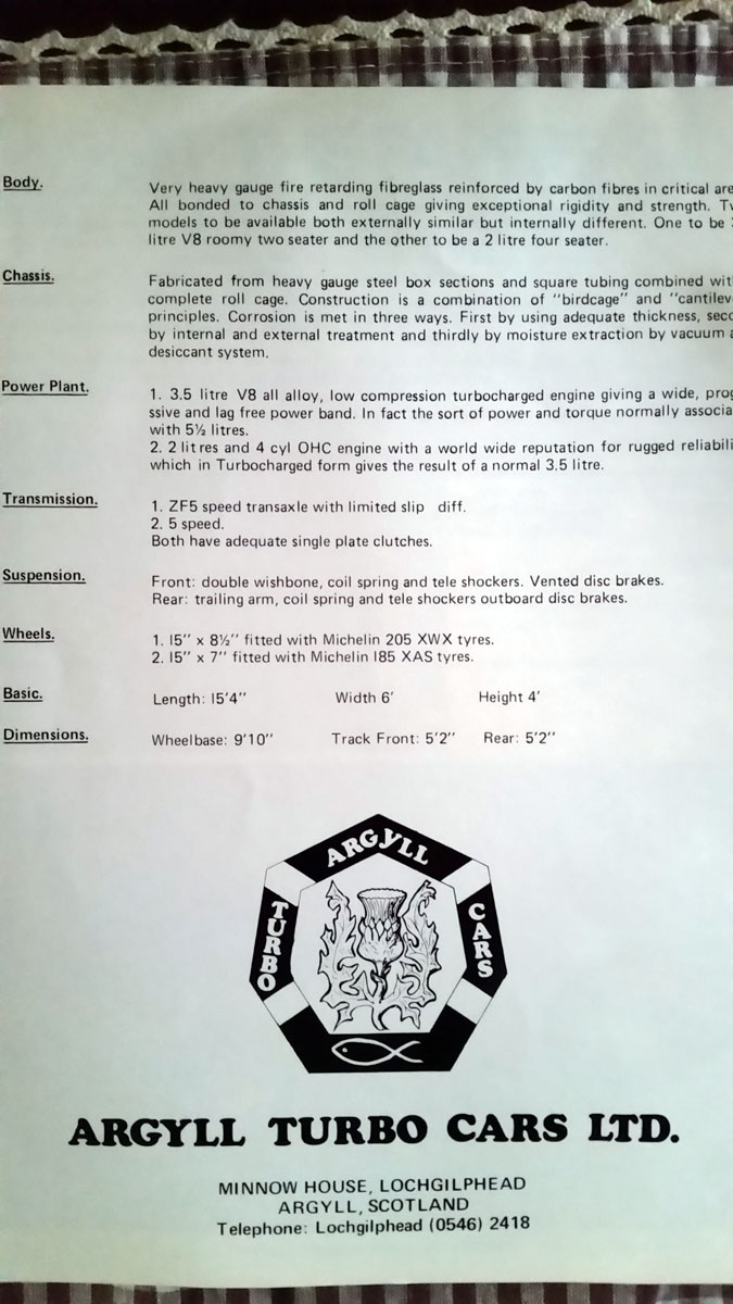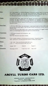 ”ARGYLL TURBO CARS LTD."までが新生アーガイル社の社名だったのが分かる一コマ。