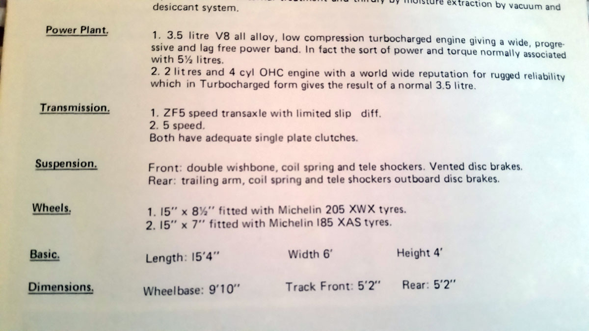 B5サイズで4ページの小さなカタログ。しかし、今まで知らなかったアーガイル社のデータ、そしてこの奇妙なスーパーカーに対する設計理念と、ボブ・ヘンダーソン氏の熱意。
